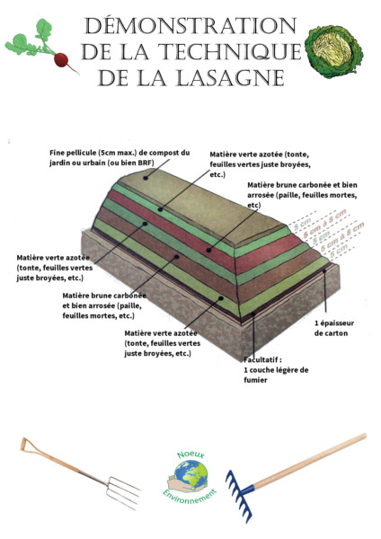 Le principe des lasagnes est d’alterner des couches de matière azotée et de matière carbonée. Le tout, associé à l’eau et à l’air, enclenche le processus de compostage favorable à l’activité biologique. C’est le même processus que dans les forêts.